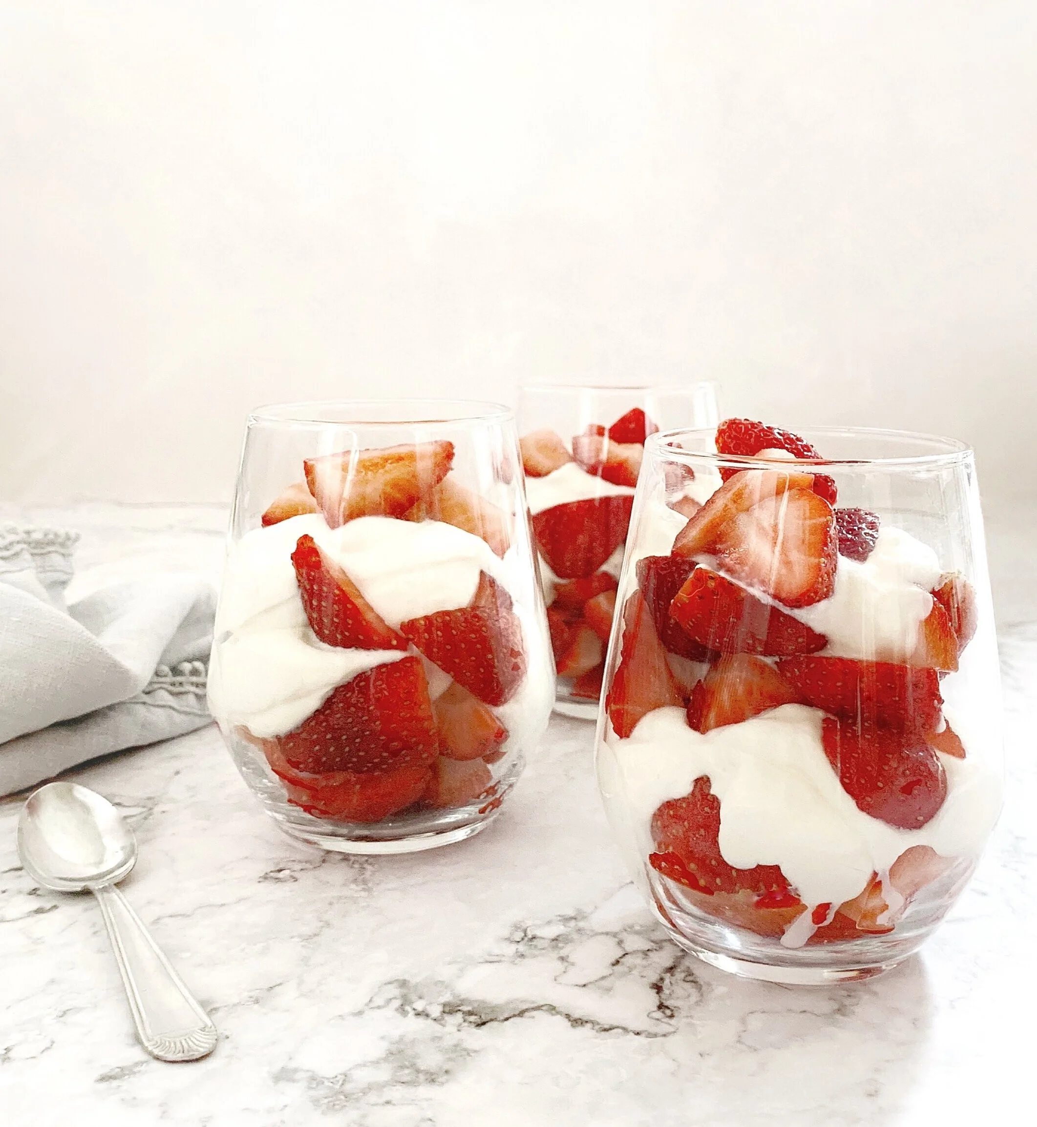- Dans quatre verrines, disposer les fraises ainsi que la crème.