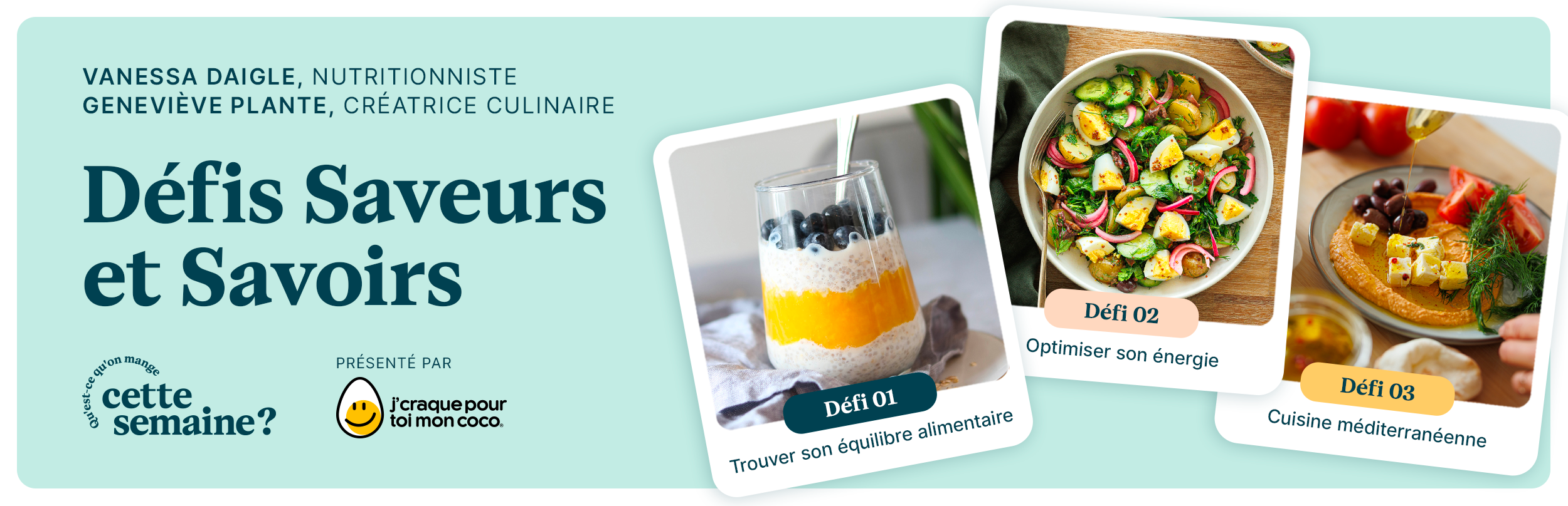 La nouvelle saison 2025-2026 du programme d’ateliers culinaires Qu’est-ce qu’on mange cette semaine, que j’ai cofondé avec la nutritionniste Vanessa Daigle, débute sous peu et nous sommes très fières de compter J’craque pour toi mon coco comme partenaire principal.